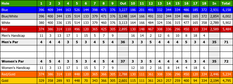 Glen Ridge Country Club Detailed Scorecard Course Database